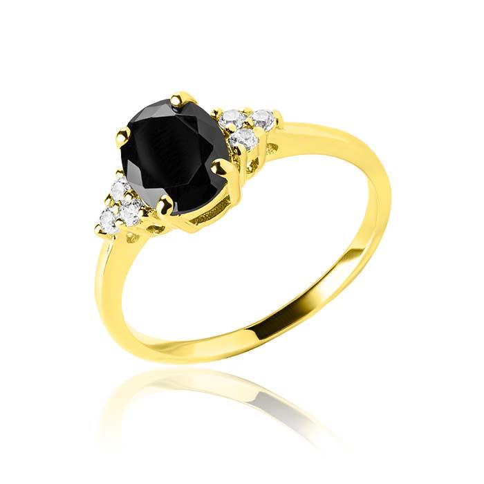 Złoty pierścionek z czarną cyrkonią