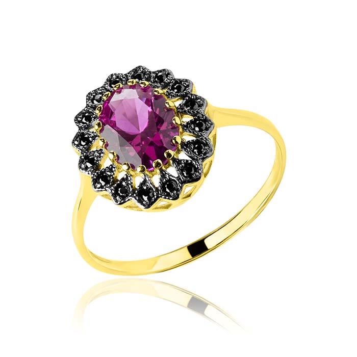 Złoty pierścionek z cyrkonią Rose Red