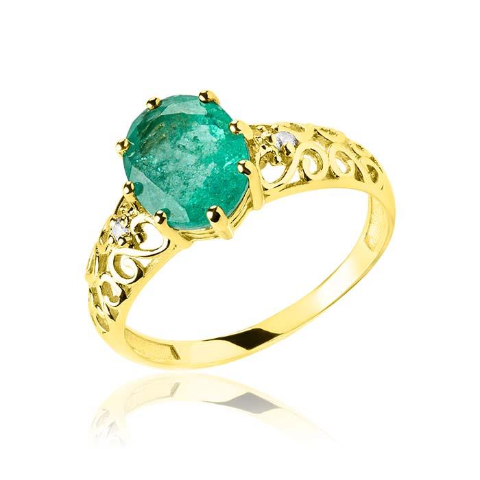 Złoty pierścionek z szmaragdem labolatoryjnym