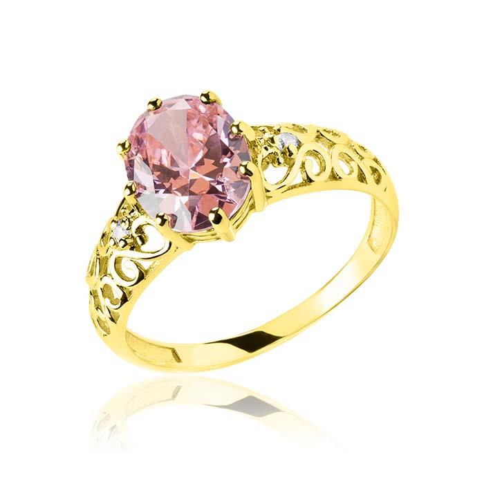 Złoty pierścionek z różową cyrkonią