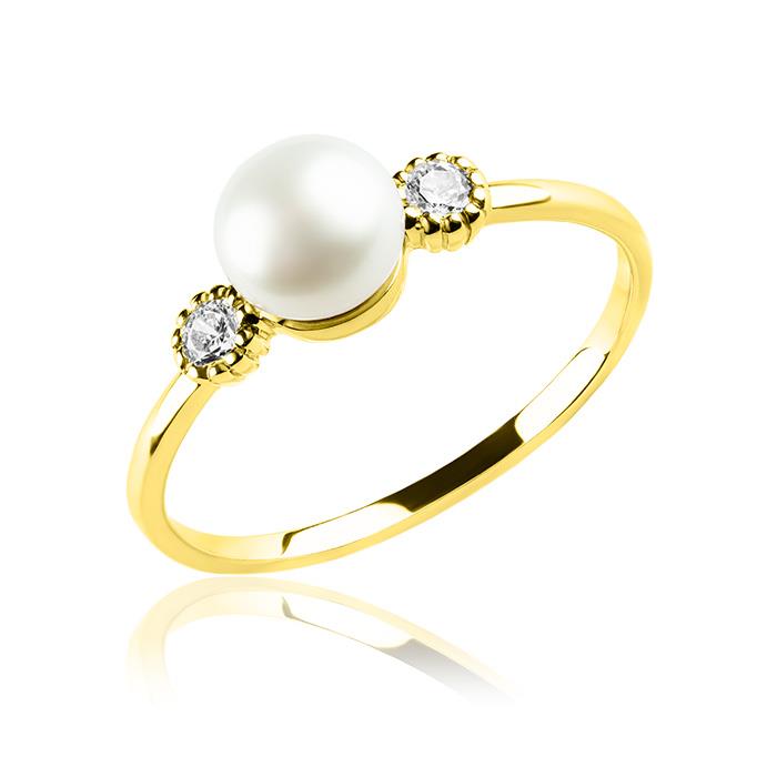 Złoty pierścionek z perłą hodowlaną i cyrkoniami