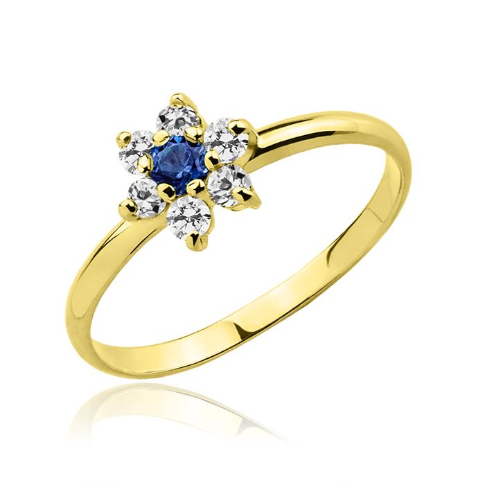 Złoty pierścionek z szafirem i cyrkoniami