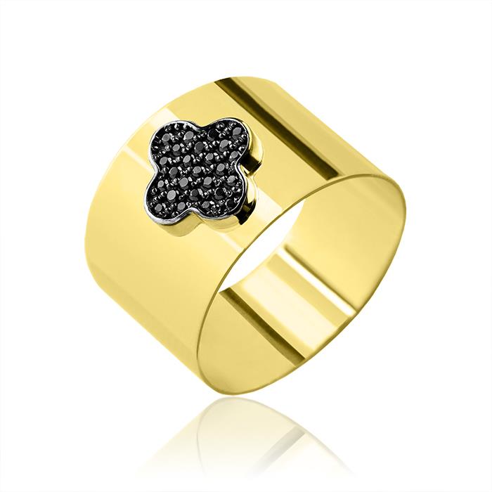 Złoty pierścionek z czarnymi cyrkoniami koniczyna