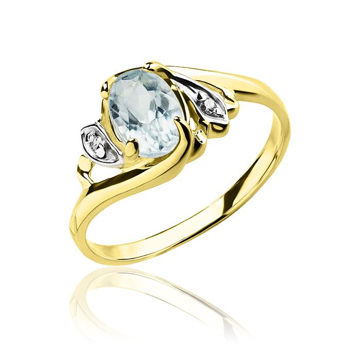 Złoty pierścionek rodowany z akwamarynem