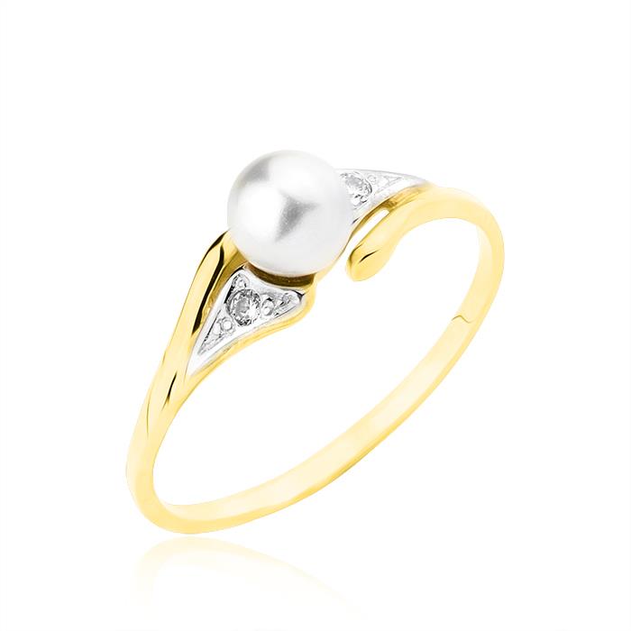 Złoty pierścionek z perłą hodowlaną i cyrkoniami