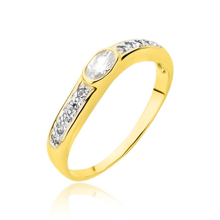 Złoty pierścionek rodowany z cyrkoniami