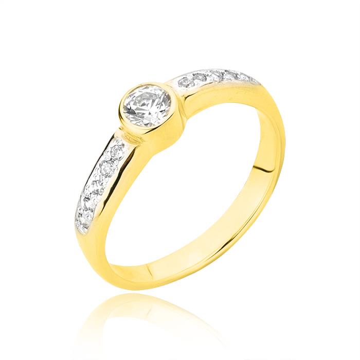 Złoty pierścionek rodowany z cyrkoniami
