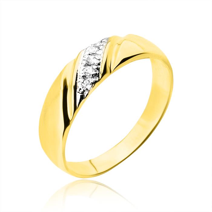 Złoty pierścionek rodowany z cyrkoniami
