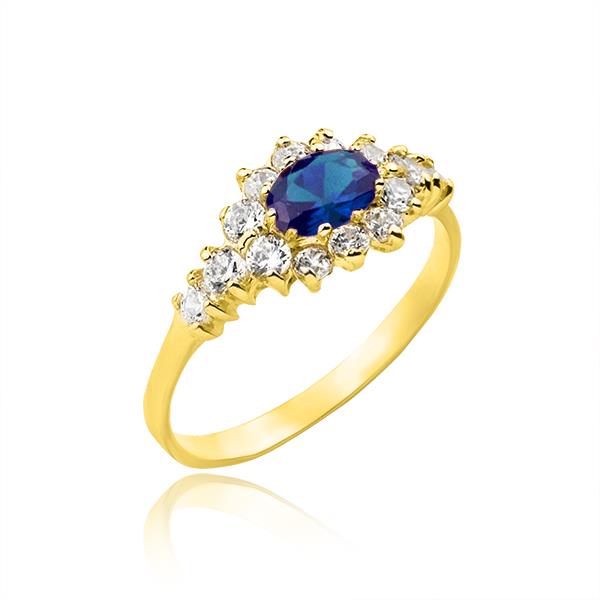 Złoty pierścionek z szafirem i cyrkoniami