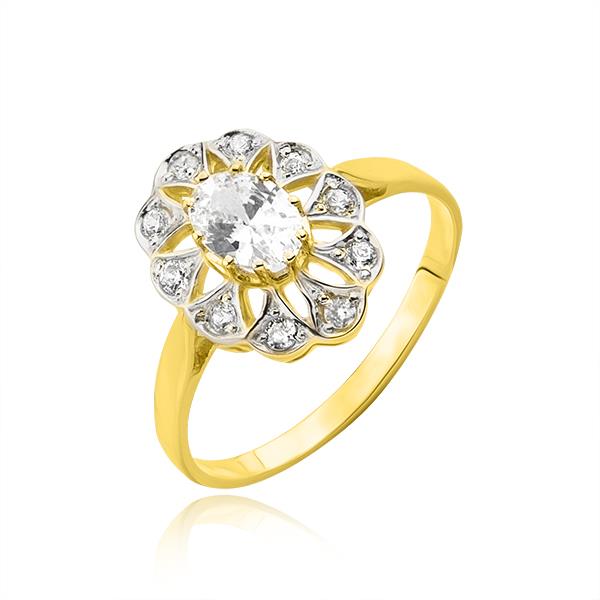 Złoty pierścionek rodowany z cyrkoniami