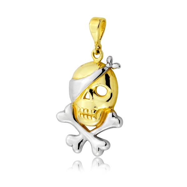 Złota zawieszka rodowana czaszka