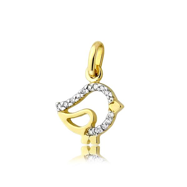 Złota zawieszka rodowany ptaszek z cyrkoniami