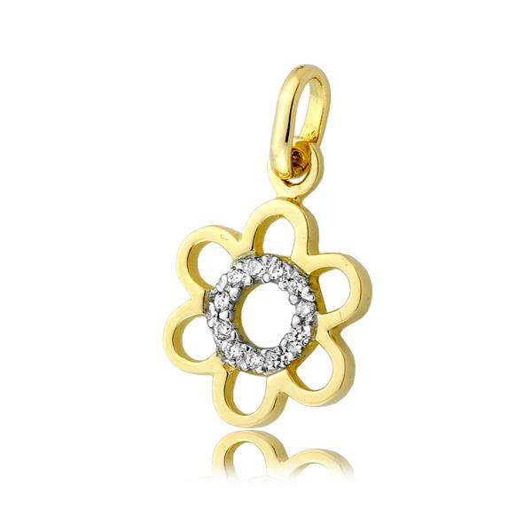 Złota zawieszka rodowany kwiatek z cyrkoniami