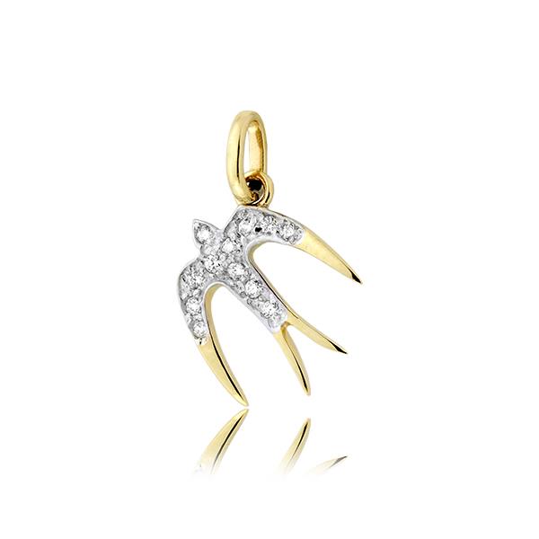 Złota zawieszka rodowana jaskółka z cyrkoniami