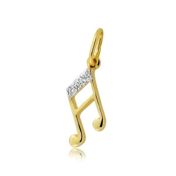 Złota zawieszka rodowana nuta z cyrkoniami
