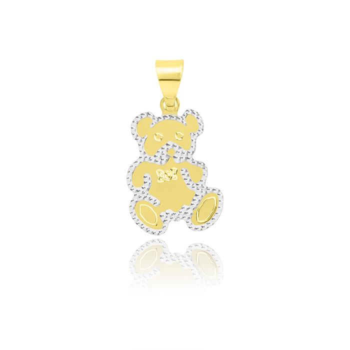 Złota zawieszka rodowany miś