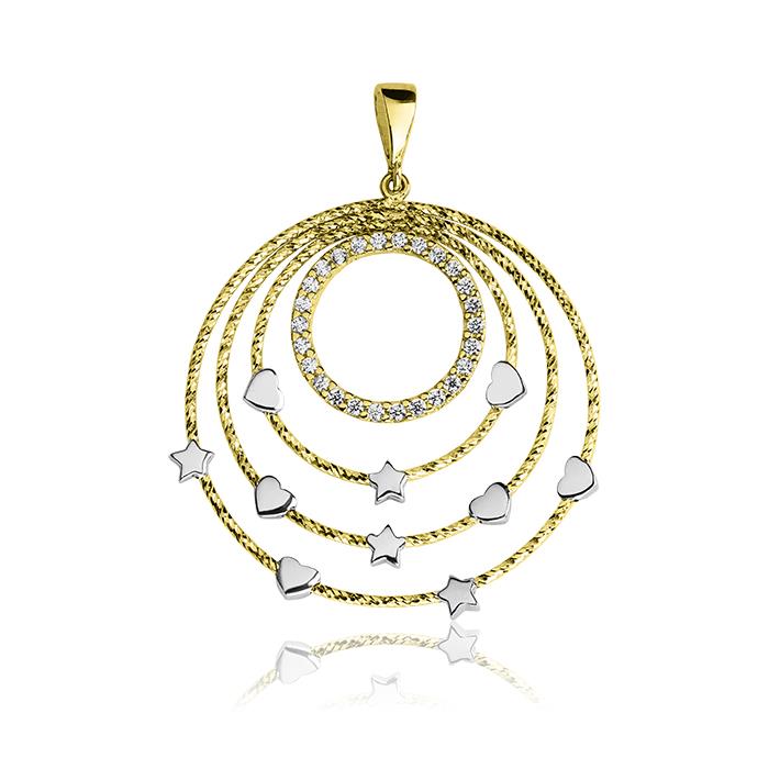 Złota zawieszka rodowana z cyrkoniami