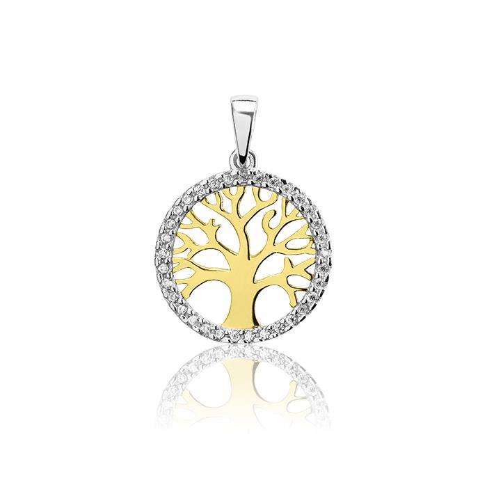 Złota zawieszka rodowane drzewko z cyrkoniami