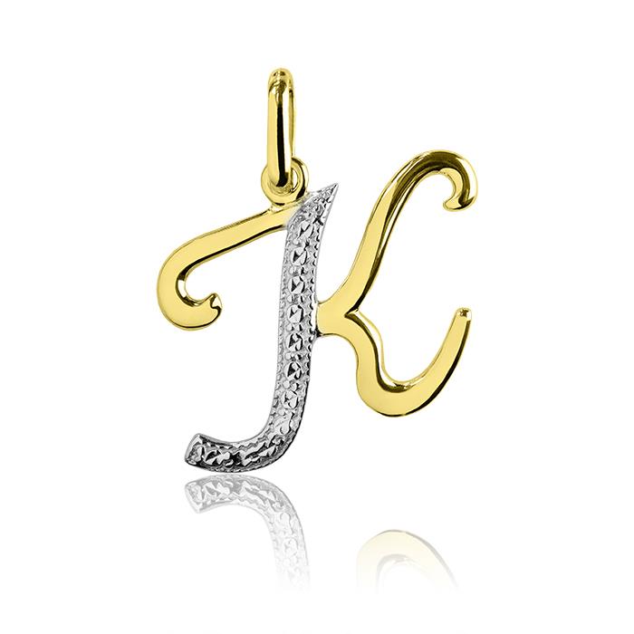 Złota zawieszka rodowana pisane "K"