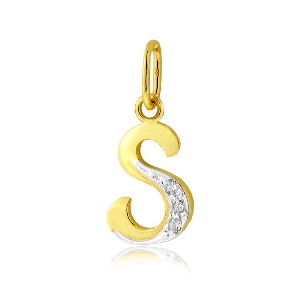 Złota zawieszka pisane "S" z cyrkoniami