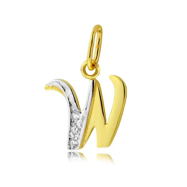 Złota zawieszka pisane "W" z cyrkoniami