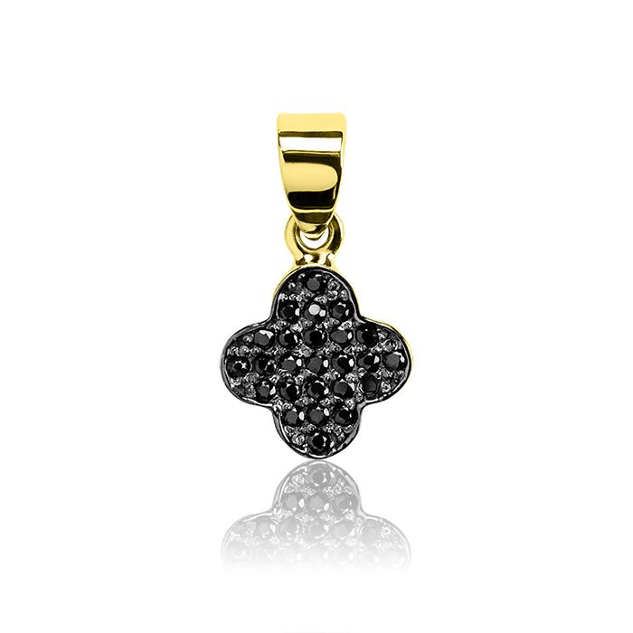 Złota zawieszka z czarnymi cyrkoniami koniczyna