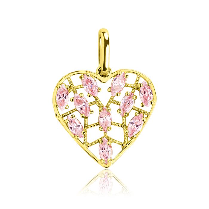 Złota zawieszka serce z różowymi cyrkoniami