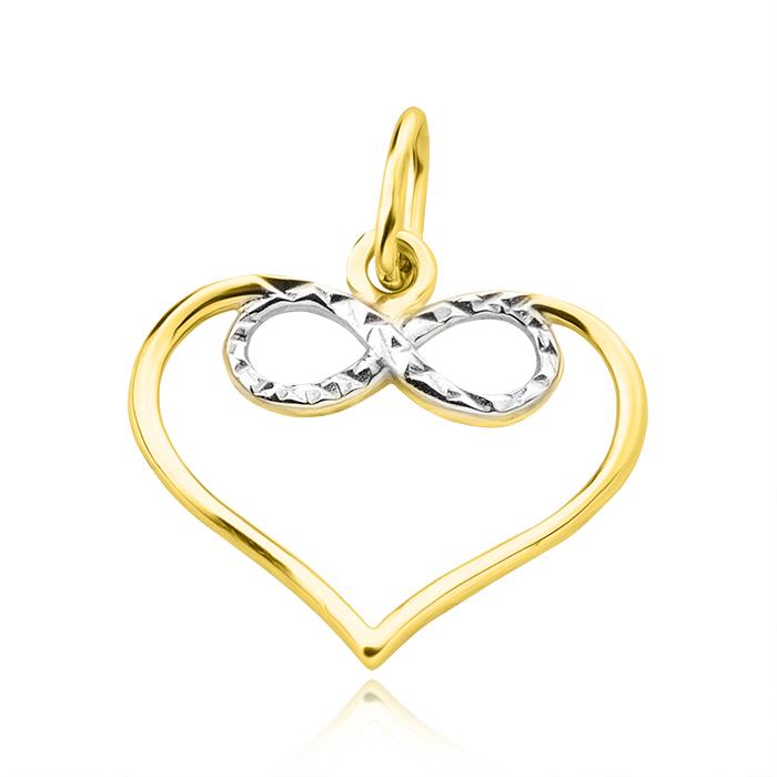 Złota zawieszka serce z rodowaną nieskończonością