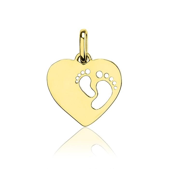 Złota zawieszka serce z wyciętą stopą