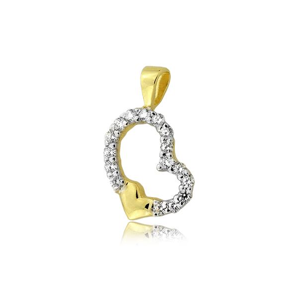 Złota zawieszka rodowane serce z cyrkoniami