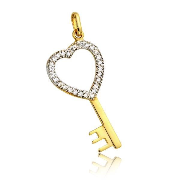 Złota zawieszka rodowane serce klucz z cyrkoniami