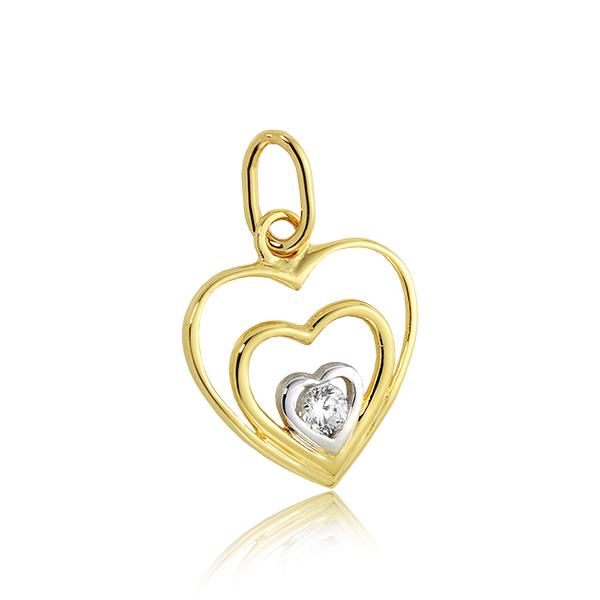 Złota zawieszka rodowane serce z cyrkoniami
