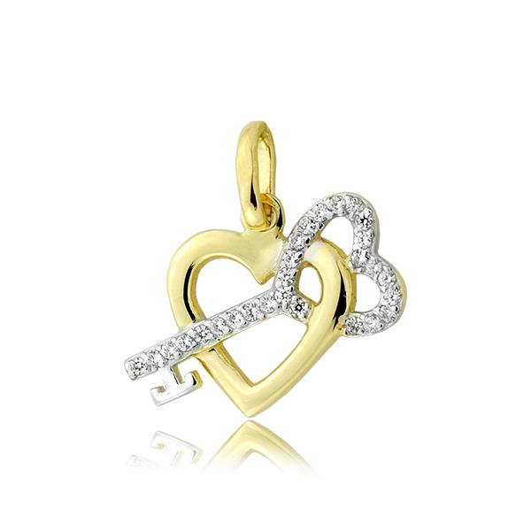 Złota zawieszka klucz w sercu z cyrkoniami