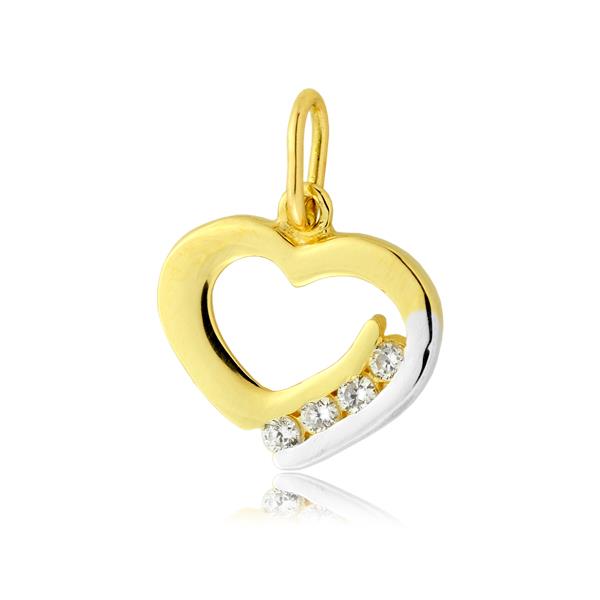 Złota zawieszka rodowane serce z cyrkoniami