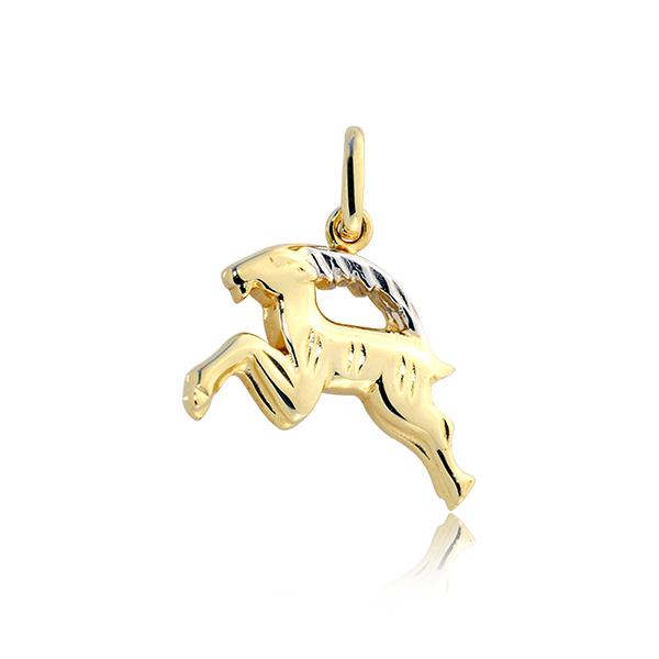 Złota zawieszka rodowana zodiak koziorożec